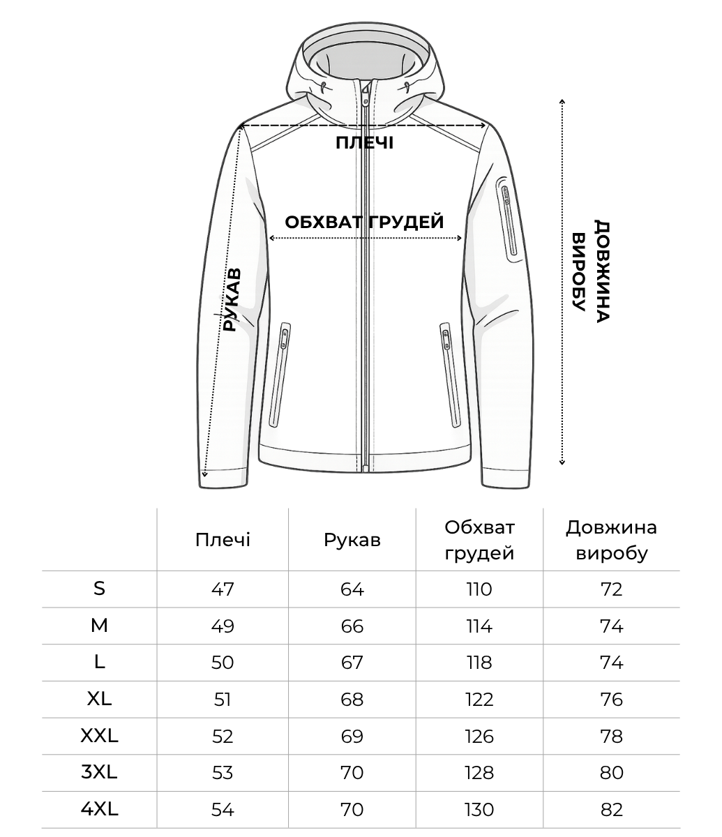 Модель поєднує класичний прямий крій із продуманими функціональними деталями — місткі кишені, еластичні манжети та на капюшоні. Підходить для носіння в місті, на службі, у дорозі чи на природі.