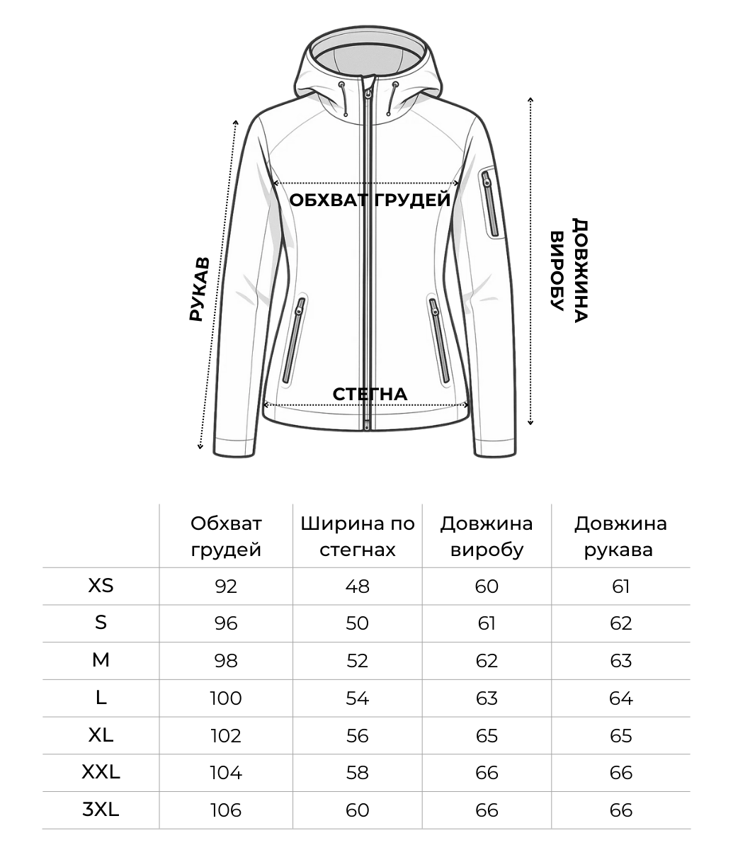 Прямий крій не обмежує рухів, регулювання на манжетах і поясі забезпечує комфортну посадку. Оптимальний варіант для демісезонного або зимового використання в місті, на природі, в польових умовах або під час активного відпочинку.